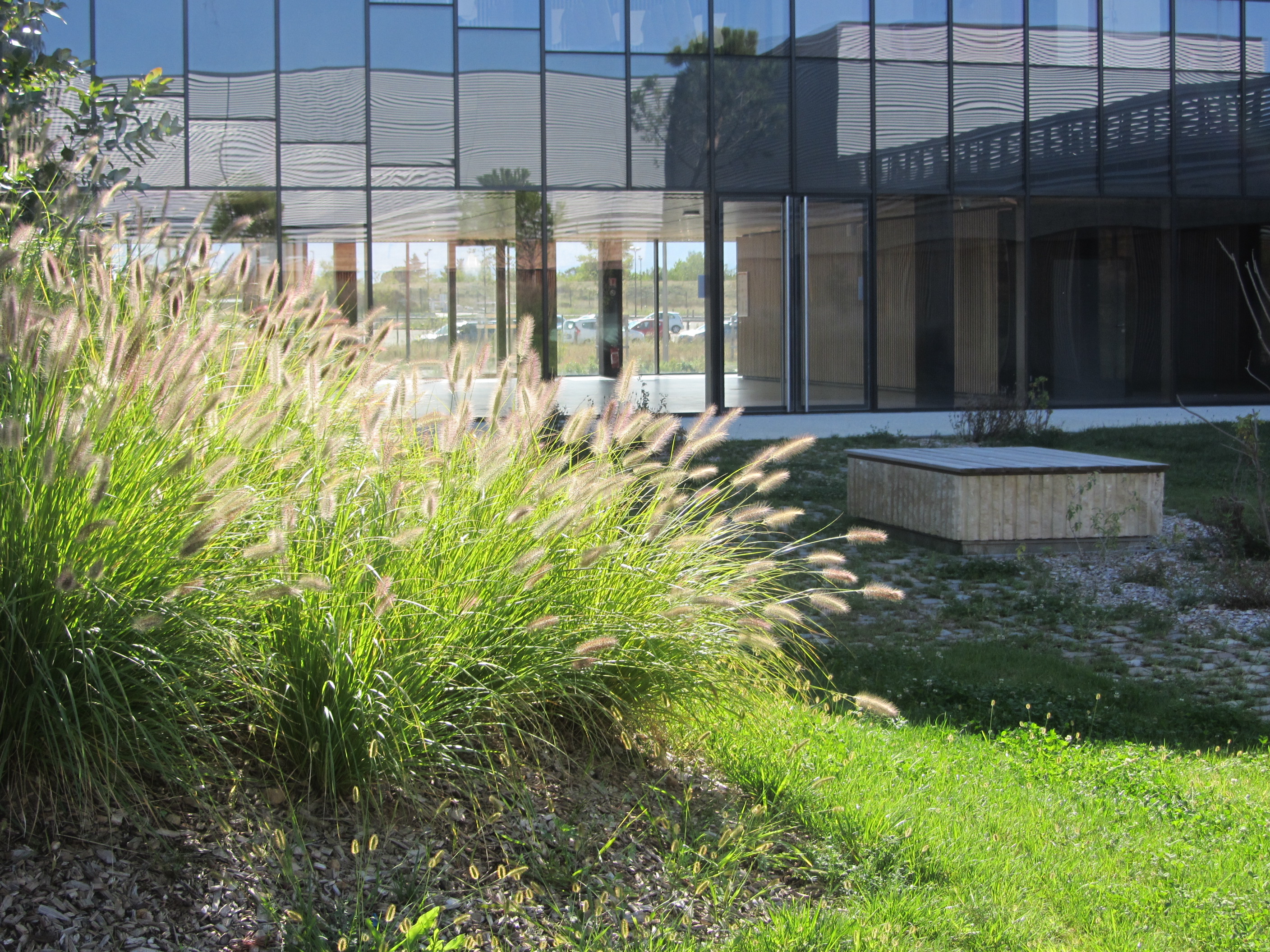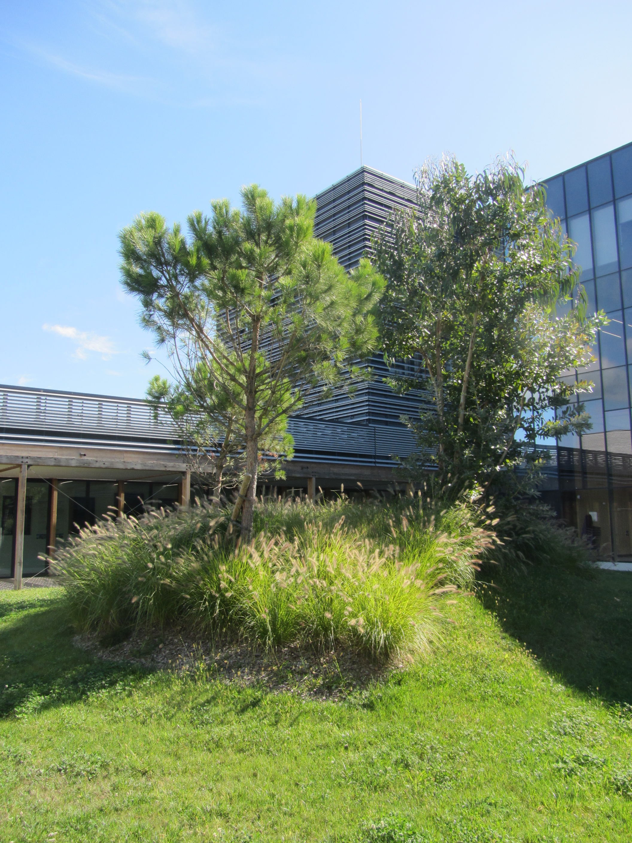 Face au Vercors, les aménagements extérieurs du site de recherche en écotoxicologie, ÉCOTOX s’inscrivent en écho au nouveau bâtiment : un graphisme végétal et un paysage soucieux du vivant, imprégné des objectifs de Haute Qualité Environnementale. Gestion in situ des déblais/remblais lors de la construction des bâtiments, mise en place d’une biodiversité végétale riche, gestion des eaux de ruissellement…